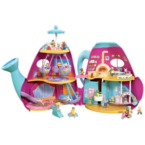 The watering can is just like your local mall It has something for everyone in the family Pop up ice cream parlor in the lid Pizza restaurant with oven 2 level kids area with swings and a ball pit Slide down the spout right into the ball pit Closed box package It has somet Read More..