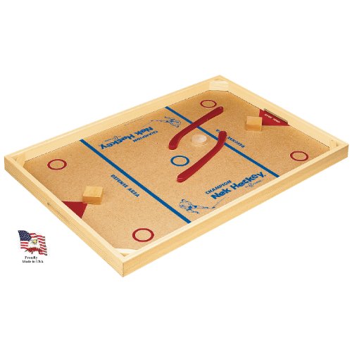Show off your best slap shot skills with this extra-big Nok-Hockey table A must-have for game rooms-and a great gift idea Larger size provides a more SIZE 47L x 35W Ages 6 and up Includes 2 wood pucks 2 plastic sticks and rules No assembly required Read More..